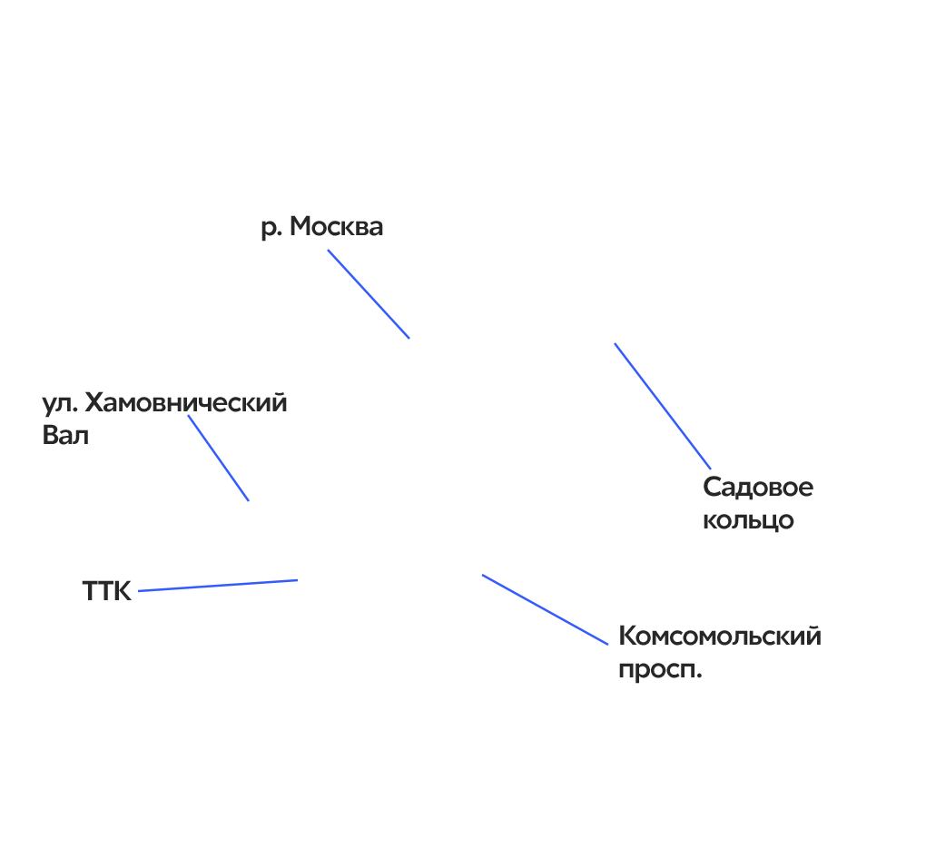 Район Якиманка с наложением дорожных и водных объектов