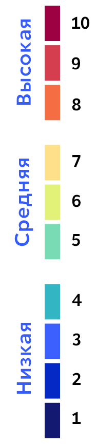 Мы попытались придумать методику, по которой можно разделить районы Москвы по степени их фрагментации. При этом учитывали взвешенное влияние разных типов дорог, других линейных структур и водных объектов, а также итоговое количество образованных фрагментов в пределах района. Десять баллов соответствуют наиболее фрагментированной территории, один балл – наименее. Рассмотрим методику расчёта на примере района Якиманка, он имеет высокую степень фрагментации (9 баллов).