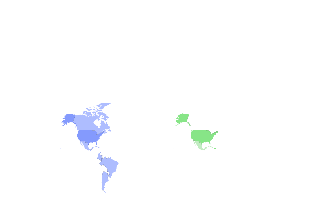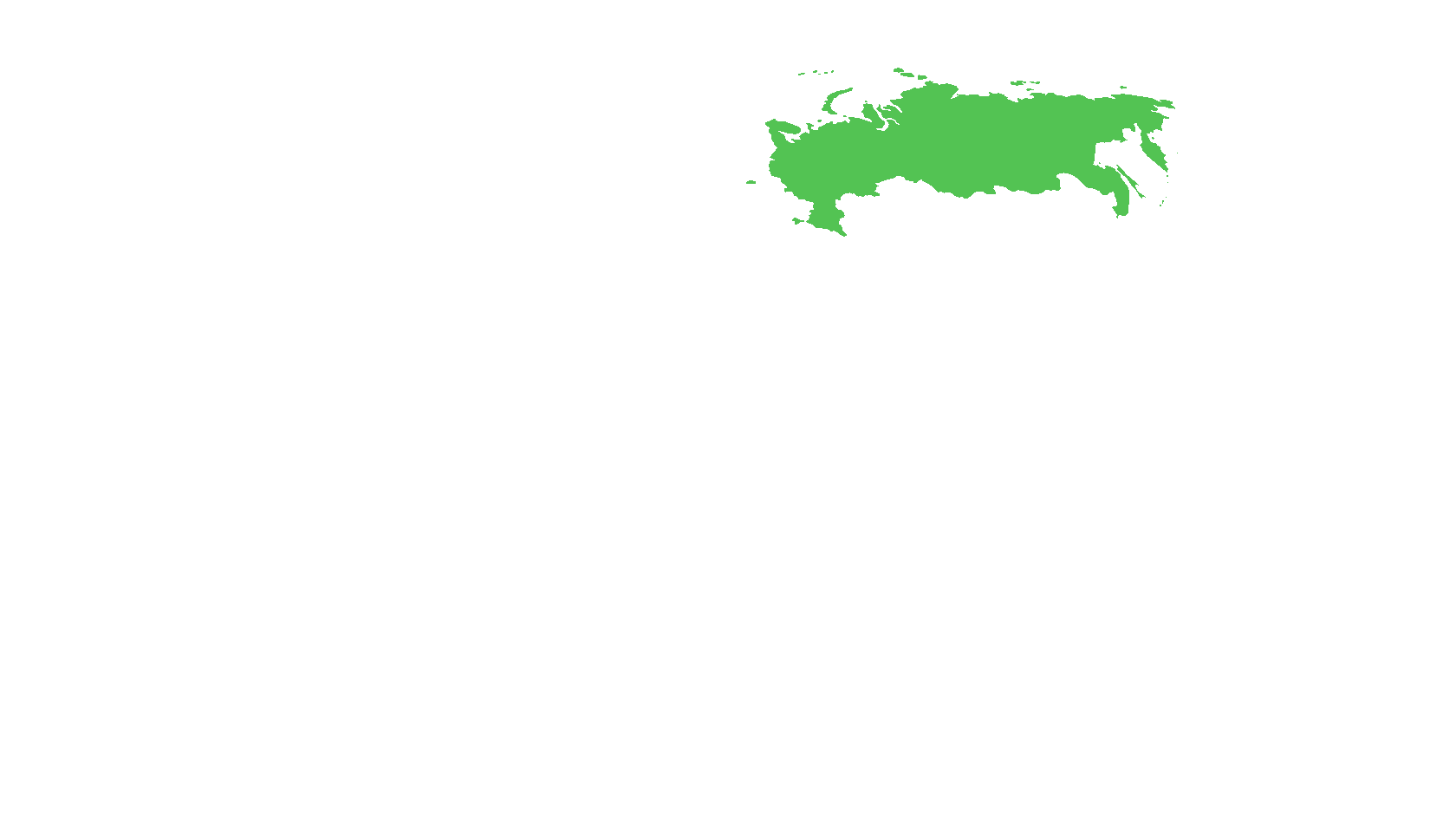 На карте-анаморфозе видно как территории стран искажаются в зависимости от количества посещений россиянами.