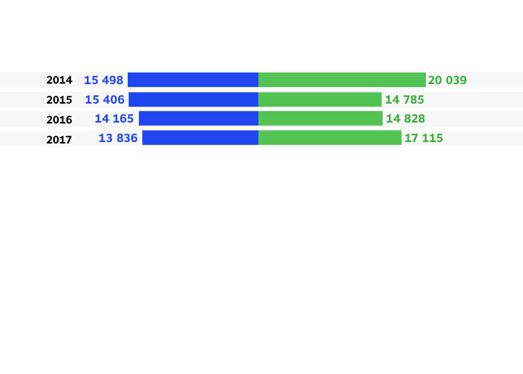 Туристы из Украины и Польши наиболее охотно посещали Россию в 2014 и 2015 годах. В 2016 и 2017 - туристы из Украины и Финляндии.